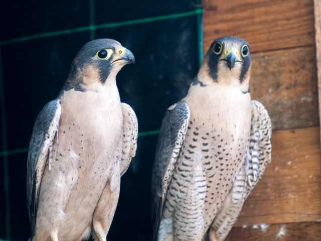 Falcons from the north of Africa and the Middle East. Though small in size, these falcons are known for their aggressiveness and tenacity in hunting and also for their color pattern as adults.