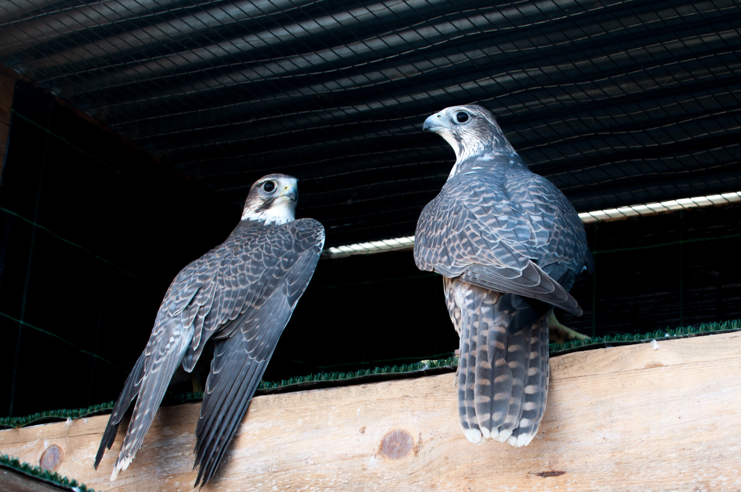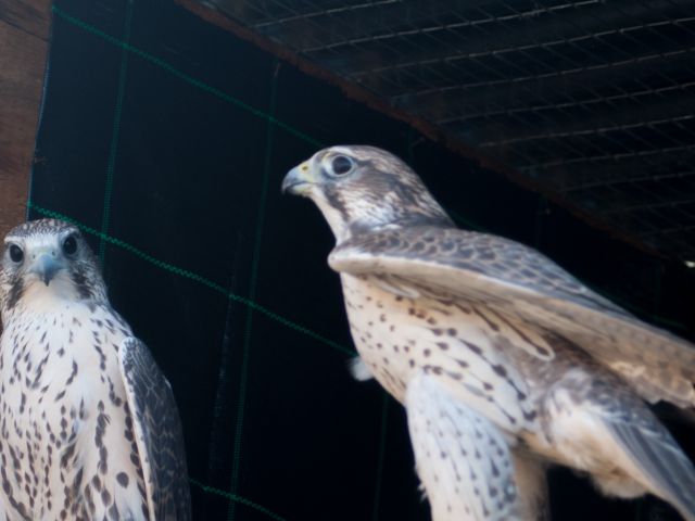 Sakers are a very robust. Clearly carved by nature to inhabit the steppes and prairies Asia with great migrations traveling to Europe and Africa . The saker falcon has been used in falconry for thousands of years, and like its very close relative the gryfalcon is a highly regarded falconry bird. Swift and powerful, it is effective against medium and large game bird species. In recent years hybrids of saker falcons and peregrine falcons have been developed in order to provide falconers a bird with greater size and horizontal speed than the peregrine, with greater propensity for diving stoops on game than the saker. Desert Hunters, they are often the bird of choice in in Arab falconry.